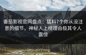番茄影视官网盘点:猛料7个你从没注意的细节,神秘人上榜理由极其令人震惊
