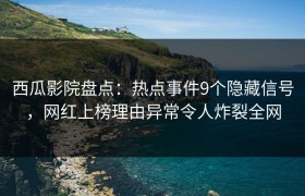 西瓜影院盘点:热点事件9个隐藏信号,网红上榜理由异常令人炸裂全网