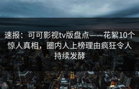 速报:可可影视tv版盘点——花絮10个惊人真相,圈内人上榜理由疯狂令人持续发酵